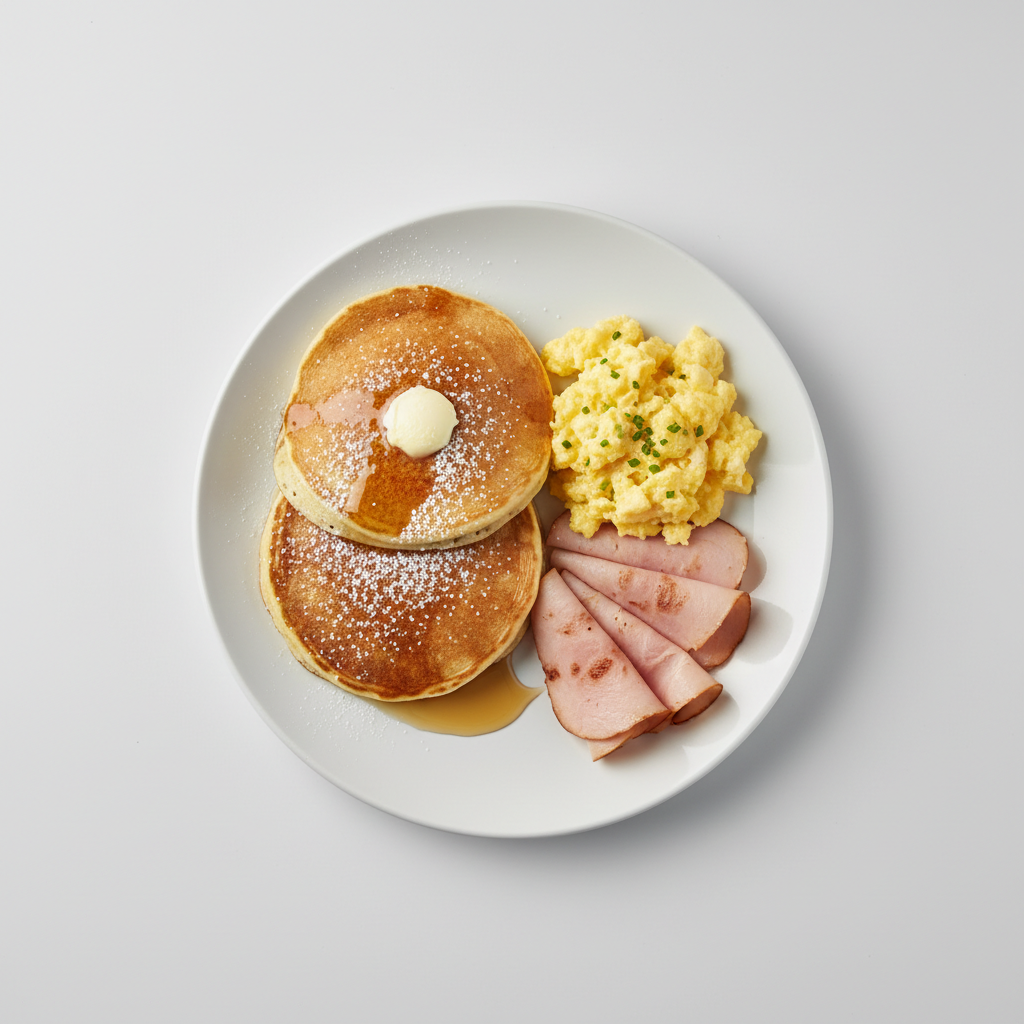 Breakfast at Luke’s | pancakes | scrambled eggs | turkey ham