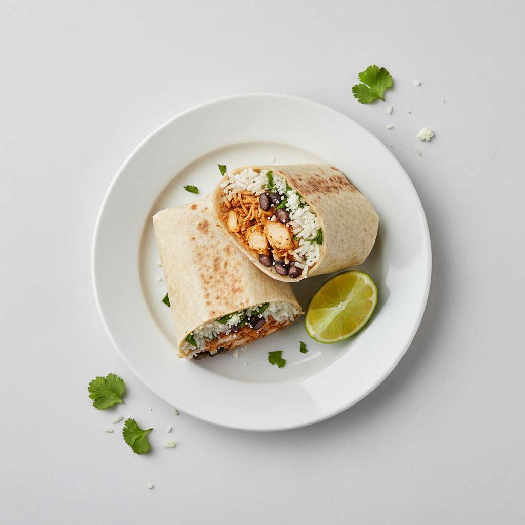 Burrito | chipotle chicken | rijst | koriander | bonen