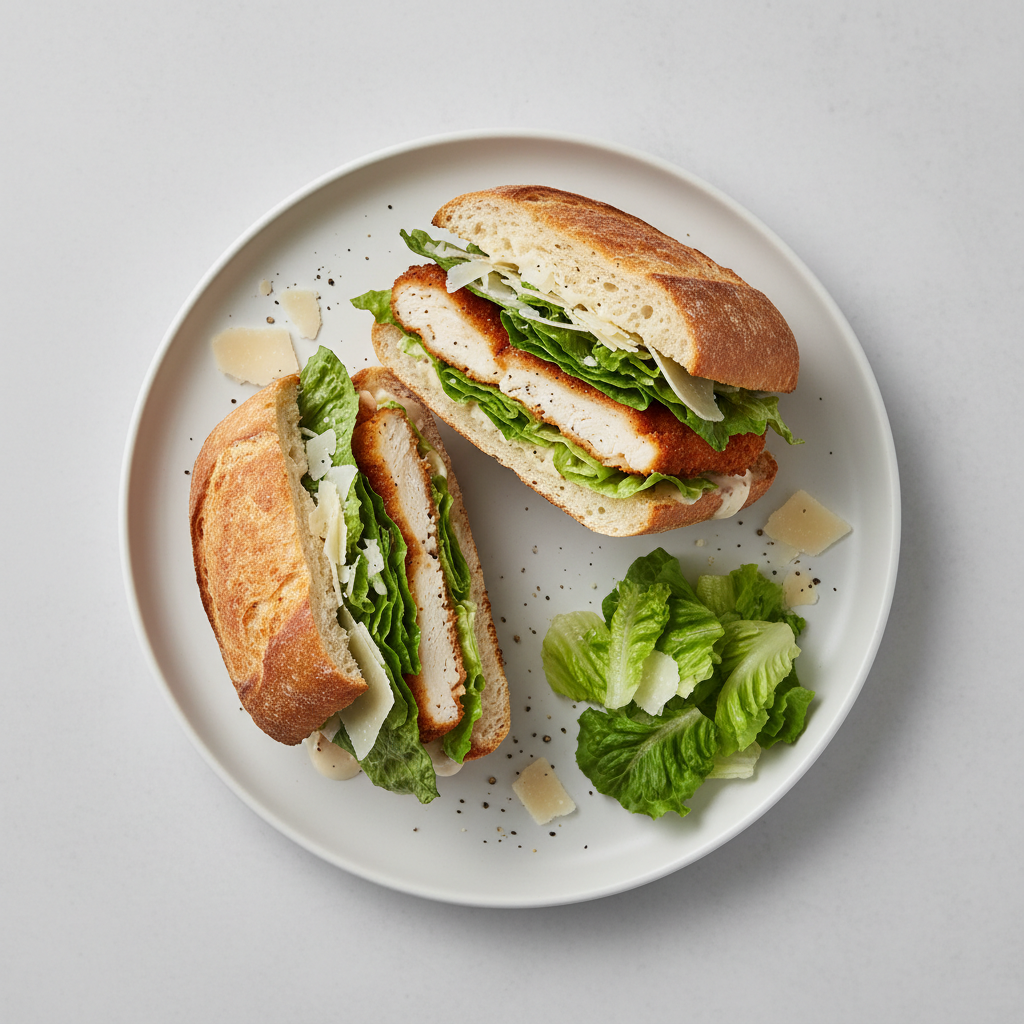 Chicken caesar sandwich | caesar dressing | parmezaan | krokante sla | kipcutlet