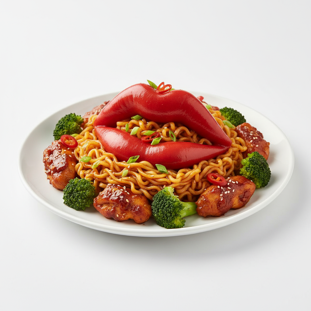 red hot lips | korean noodles | gochujang chicken | broccoli